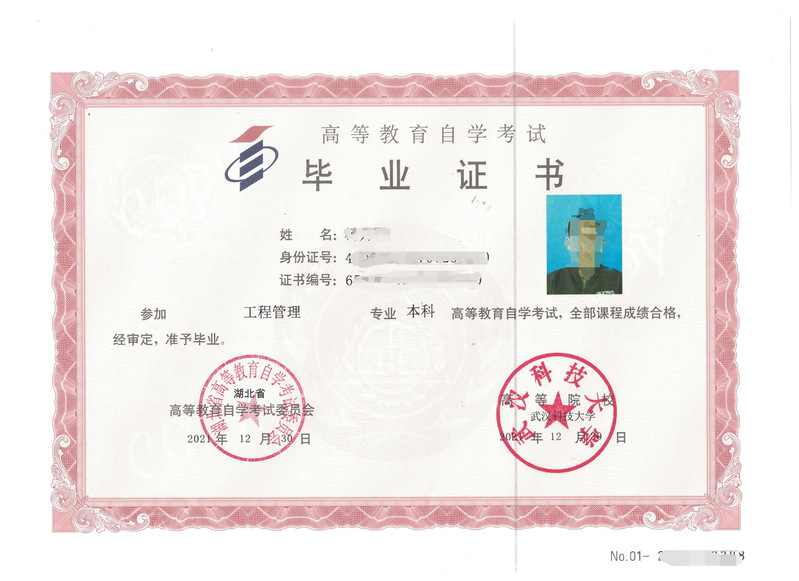 (二)畢業證書。由湖北省高等教育自學考試委員會頒發,主考學校副署,國家承認學曆,學信網可查。