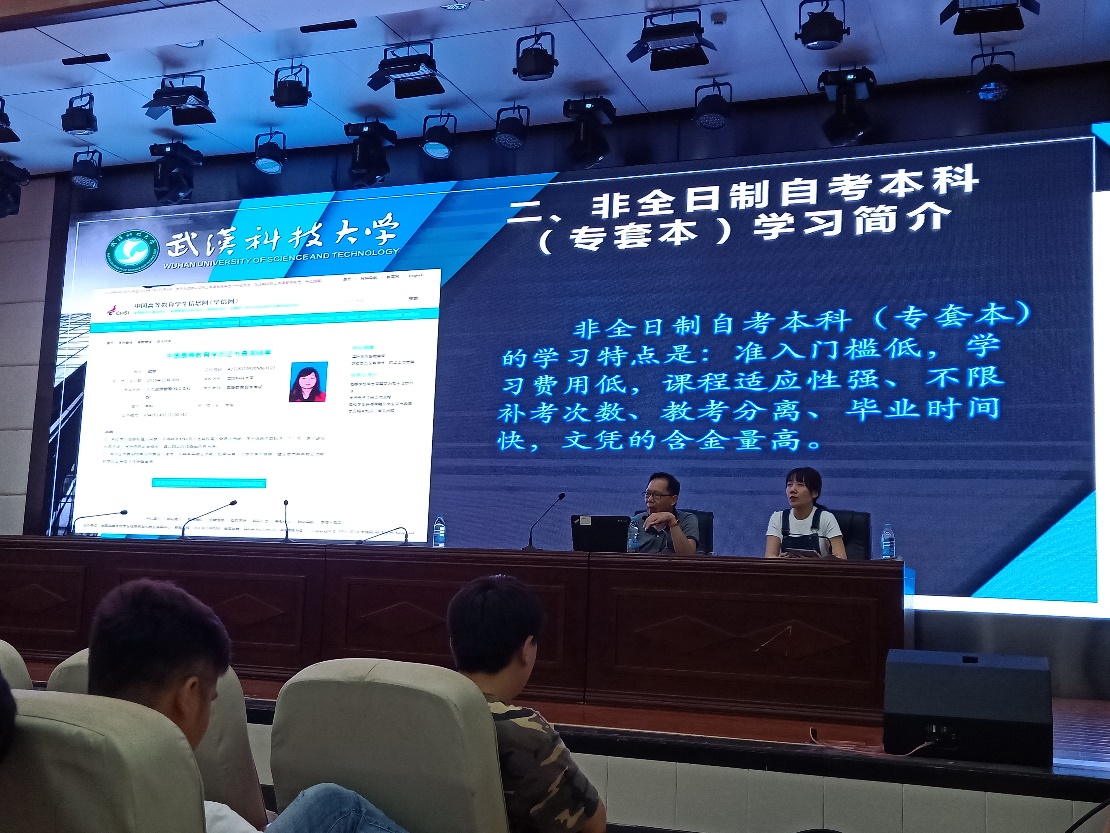 925日晚,我院自考辦主任董克斌老師和副主任王新穎老師應邀至湖北城市建設職業技術學院,開展自學考試“專升本銜接”招生宣傳動員工作。湖北城市建設職業技術學院成人教育與中職教育處處長王文坤、成人教育與中職教育處各位老師以及18級全體新生參加了動員會。