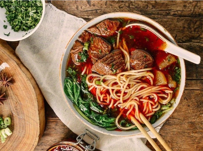 A bowl of hot noodle soup topped with tender braised beef is an absolutely satisfying comfort dish.