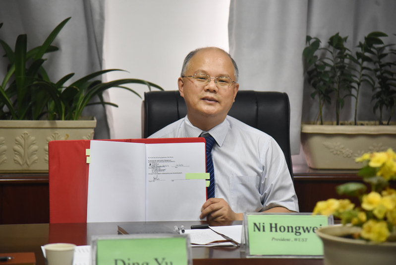The participants included president of the University of Applied Management Christian Werner, general assistant to the president Christina Messic, head of international projects Zhang Yuting, president of WUST Ni Hongwei, vice president of WUST Liu Jing, executive dean of Undergraduate School Ding Yu, director of the Office of International Relations Xiao Qiaoning, and deputy director of the Office of International Relations Yang Xi.