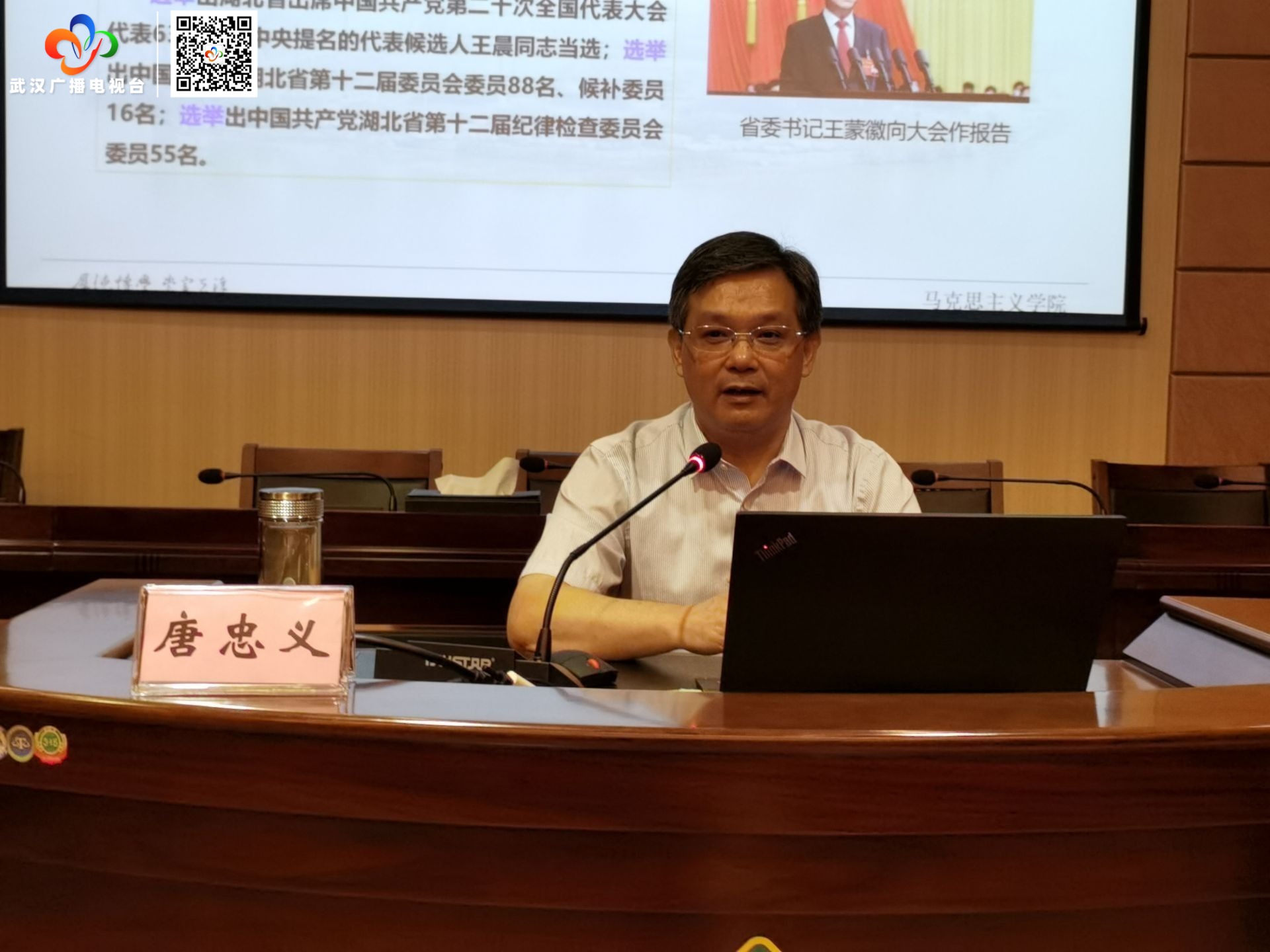 唐忠義以“建設全國構建新發展格局先行區的行動綱領 學習貫徹中國共産黨湖北省第十二次代表大會精神”為主題,深刻闡釋了湖北建設先行區的重要意義、機遇挑戰、總體部署和重大舉措,結合供銷社實際,重點對“以強縣工程為抓手,全面推進鄉村振興”進行了詳細解讀。他表示,武漢市供銷社系統黨員幹部要以習近平總書記武漢考察講話精神為指引,推動落實省十二次黨代會重大部署,以永不懈怠的精神狀态和一往無前的奮鬥姿态,在實施強縣工程中當先鋒打頭陣、為全省建設全國新發展格局先行區貢獻武漢供銷力量。